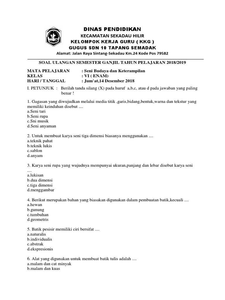 Soal Ukk Pat Sbk Kelas 7 Smp Mts Tahun 2019 from cdn.statically.io Bacalah setiap soal dengan teliti. Aug 20, 2021 · soal uts batik kelas 5 semester 2 dan kunci jawaban. Download soal sbk kelas 1 sd semester 2. Jan 28, 2021 · materi pelajaran sbk kelas 4 sd/mi semester 1/2 lengkap materi pelajaran sbk kelas 4 semester 2 sd/mi lengkap | portal materi pelajaran rangkuman materi pelajaran sbk kelas 4.docx rangkuman pelajaran materi sbk kelas 3 sd/mi semester 1/2 contoh soal seni budaya dan ketrampilan kelas iv sd materi sbk kelas 2 sd/mi semester 1/2 lengkap materi pelajaran sbk kelas 4 semester 1 sd/mi lengkap. Jul 01, 2020 · soal sbk kelas 2 semester 1 dan kunci jawaban guru ilmu sosial. Kerjakan dulu soal yang kamu anggap mudah. Kunci jawaban pkn tugas mandiri 53 kelas 12 halaman 155 diterbitkan november 20 2016. Soal uas sbk semester 1 sd kelas 6.