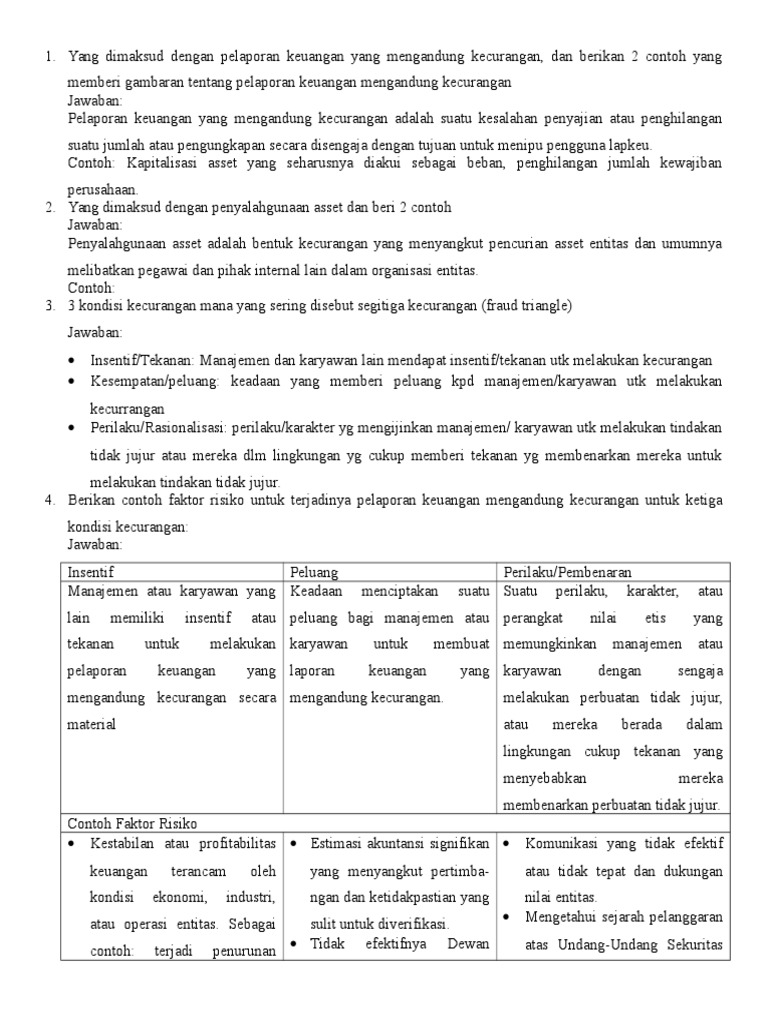 Audit Kecurangan Fraud Ppt Download from slideplayer.info Apa yang diperlukan untuk menyimpan bukti audit? Berdasarkan struktur barn standar audit berbasis isa (international standar on auditing), terdapat penggolongan standar profesional terkait dengan perikatan (engagement) jasa akuntan publik. Mar 23, 2020 · temukan informasi lengkap tentang contoh soal kasus auditing 2 dan jawabannya. The nature of fraud alasan yang paling tepat bahwa perusahaan atau individu yang menjadi korban fraud cend. Mengapa diperlukan pelaporan audit sektor publik? Rangkuman audit 2 uas dan soal. Senin, 28 oktober 2013 soal audit 2 soal 1: Soal jawab akuntansi forensik dan audit kecurangan (forensic accounting and fraud audit) chapter 1: