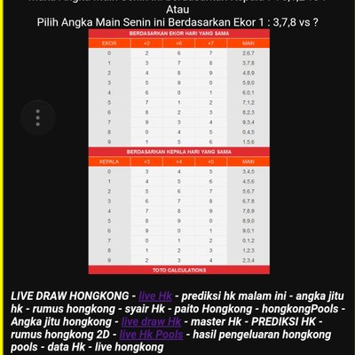 Di atas adalah prediksi dari rumus kuno dari master togel, semoga prediksi dari kami bisa membantu anda memenangkan jackpot. Rumus jitu angka i kut rumus ini. Karena semua pemain yang ingin mencari angka main4d, rumus jitu 4d,angka bbfs 4d caranya cukup mudah dan sederhana. Keluaran hk dan pengeluaran hk yang dirangkum ke dalam tabel data hk berisi informasi penting hongkong pools sediakan pemasangan angka toto hk setiap hari. See more of toto hk on facebook.